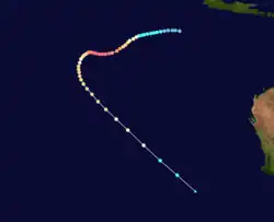 Esau moved into the Australian region and brought gale-force winds to the Solomon Islands during 29 February.[8] In the same time, the JTWC also reported that Esau had peaked with 1-minute sustained wind speeds of 240 km/h (150 mph), which made it equivalent to a category 4 hurricane on the Saffir-Simpson hurricane wind scale.[9] However, Esau moved back into the South Pacific basin and started to weaken the next day.[10][11]