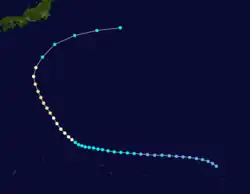 | Kent | August 6 – 19 | Very strong typhoon | 175 km/h (109 mph) | 930 hPa (27.46 inHg) | Marshall Islands, Japan | $15 million | 8 | |