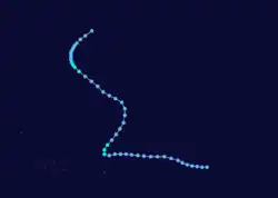On 3 February, a weakening Tropical Storm Ekeka tracked west of the International Date Line, entering the West Pacific basin and being monitored by the JMA.[5] Early the next day, the JTWC began issuing bulletins on Ekeka, which was in an environment with high wind shear.[7] Later that same day, Ekeka weakened into a tropical depression.[5][7] Several days later, on 8 February, the JMA stopped tracking the depression.[5] The JTWC kept tracking Ekeka for a few hours until it passed over Chuuk.[7] Early on February 9, Ekeka finally dissipated about 800 miles (1,300 km) east-southeast of Palau, or about 310 miles (500 km) off the north coast of Papua New Guinea.[8]