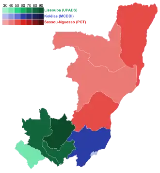 With Sassou-Nguesso's support, Lissouba defeated Kolélas in the second round with 61% of the vote. Lissouba won all regions in the second round except Brazzaville, Pool, and Kouilou.[1]