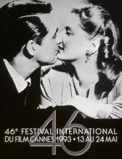 Official poster of the 46th Cannes Film Festival, featuring still of Cary Grant and Ingrid Bergman from Alfred Hitchcock's Notorious.[1]