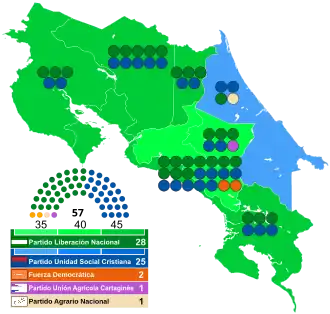 | National Liberation Party | 658,258 | 44.61 | 28 | +3 |