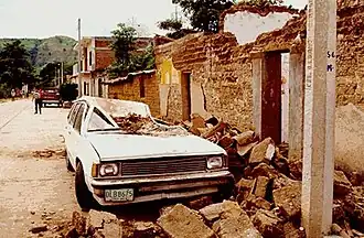The 1995 Chiapas earthquake occurred on October 20 at 20:38 local time. The epicenter was located in Ocozocoautla de Espinosa, in the state of Chiapas, Mexico, near Tuxtla Gutiérrez.[2] It had a magnitude of Mw 7.2,[3] or ML 6.5.[4] Building damage was reported. Around 70 people were reported injured. In Tuxtla Gutiérrez, telephone and electricity services were momentarily interrupted.[5] This earthquake could be felt strongly in Mexico City and in many parts of southern Mexico. It could also be felt in Guatemala and El Salvador.[6] The centroid mechanism is of thrust faulting with a small strike-slip component. The rupture of this earthquake propagated from NW to SE over a distance of about 30 km. The duration of the rupture was about 17 seconds.[7] The earthquake was resulted from the internal deformation of the Cocos plate, which is subducting beneath the North American plate.[8]