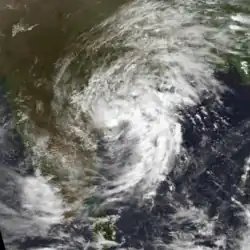 A low-pressure area accompanied by a well-defined circulation persisted over central India on October 11. By the following day, the system emerged into the Arabian Sea, whereupon its convection organized west of a sheared circulation. On October 12, the system organized into a depression, classified Tropical Cyclone 02A by the JTWC. Steered by a ridge, it moved to the west-northwest and gradually intensified. The IMD upgraded it to a cyclonic storm on October 14, estimating peak 3 minute winds of 85 km/h (55 mph). The JTWC assessed slightly higher 1 minute winds of 95 km/h (60 mph). Increased wind shear stripped away the convection, causing the storm to weaken. By October 17, the system deteriorated into a depression and began drifting to the southwest, having moved between two ridges. Later that day, the system degenerated into a remnant low, which the JTWC tracked for an additional day until dissipation east of the Somalia coastline.[2][3]
