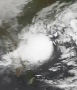 While the previous storm was paralleling the east Indian coastline, another disturbance formed off the west coast on June 15, also associated with the monsoon. The new area of convection persisted,[3] developing a distinct circulation by the next day. Early on June 17, a depression developed about 365 km (227 mi) west of Mumbai.[1] At 18:00 UTC that day, the JTWC classified it as Tropical Cyclone 04A, after the wind field became more defined.[3] The system moved to the northeast within the influence of the monsoon, and quickly intensified due to an anticyclone aloft providing favorable conditions.[1][18] On June 18, the IMD upgraded the system to a cyclonic storm, and further to a severe cyclonic storm by 18:00 UTC that day. At 23:00 UTC, the storm made landfall on Gujarat near Diu, only the fourth cyclone since 1891 to strike the state in June. An hour later the IMD assessed peak 3-minute winds of 110 km/h (70 mph), based on the appearance of an eye feature.[1] Meanwhile, the JTWC assessed slightly stronger 1-minute winds of 120 km/h (75 mph), equivalent to a minimal hurricane.[3] The storm turned northward and slowly weakened, degenerating into a remnant low over Rajasthan on June 20 before being swept up by an approaching trough.[1]