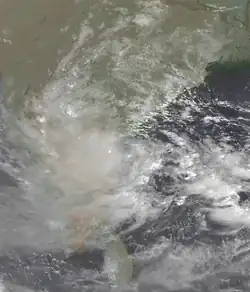 During June, a series of storms affected India in the height of the monsoon season.[4] Two storms on opposite sides of the country contributed to the northward progression of the monsoon.[1] Continued rainfall from the monsoon led to additional flooding. As of July 24, flooding from widespread rains had killed 731 people across India. The floods also wrecked 368,420 houses and ruined 394,000 ha (970,000 acres) of crop fields.[5] The monsoon became reestablished over open waters on October 9, spawning two storms in the basin that month.[6] There were two simultaneous storms on opposite sides of India in October, which would not happen again until May 2010.[7]