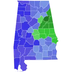 In the 1968 presidential election, Alabama supported native son and American Independent Party candidate George Wallace over both Richard Nixon and Hubert Humphrey. Wallace was the official Democratic candidate in Alabama, while Humphrey was listed as the "National Democratic".[1] In 1976, Democratic candidate Jimmy Carter from Georgia carried the state, the region, and the nation, but Democratic control of the region slipped after that.