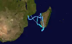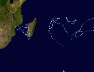 During the year, the Météo-France office on Réunion (MFR) issued warnings for tropical systems in the region as the Regional Specialised Meteorological Centre.[1] In the year, MFR tracked tropical cyclones south of the equator from the coast of Africa to 90° E.[2] The Joint Typhoon Warning Center also issued warnings in an unofficial capacity.[3]