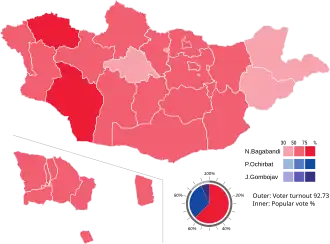 The election of Bagabandi was described as a protest vote against the rapid economic reforms of the Democratic Union Coalition government.[3]
