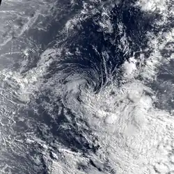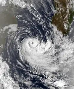 In November, rapidly weakening Tropical Cyclone Alison moved from the Australian basin and dissipated immediately upon entering the south-west Indian Ocean on November 13.[19] On December 4, short-lived Tropical Disturbance A3 was classified by MFR, subsequently drifting into the Australian region.[20] Possibly related to the previous system, Tropical Cyclone Cathy moved from the Australian basin into the basin on December 28, quickly dissipating.[20][21]