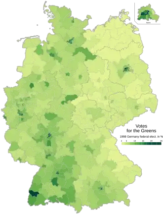 - ^ a b Green, Simon. "The 1998 German Bundestag election: The end of an era." Parliamentary Affairs Apr 1999: 52. :Pg. 306–320. LexisNexis Academic. Leslie F. Maplass Library, Macomb, IL. 24 Feb
