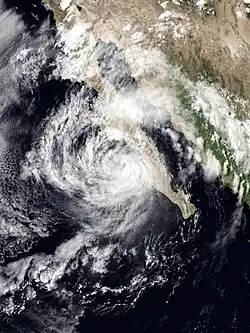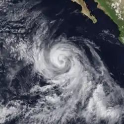 Isis developed on September 1 out of the interaction between a tropical wave and a large, low-level circulation to the southwest of Mexico. It moved northward, striking the extreme southeastern portion of the Baja California Peninsula before attaining hurricane status in the Gulf of California. Isis made landfall at Topolobampo in the state of Sinaloa on September 3 and quickly lost its low-level circulation.[34] The remnants persisted for several days before dissipating in the US state of Idaho.[35]
