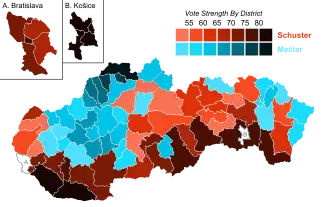 Presidential elections were held in Slovakia on 15 May 1999, with a second round on 29 May.[1] Following a constitutional amendment in 1998 that introduced direct presidential elections for the first time,[2] they resulted in a victory for Rudolf Schuster, who received 57% of the vote in the run-off.[3]