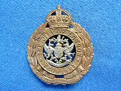 The Imperial Yeomanry concept was considered a success: before the war ended the existing Yeomanry regiments at home were converted into Imperial Yeomanry, and some of the war-raised battalions were established as permanent regiments. The Rough Riders were established on 27 July 1901 as 1st County of London Imperial Yeomanry (Rough Riders) under the command of Viscount Maitland, promoted to lieutenant-colonel, while Lt-Col Colvin was invited to raise and command a separate new regiment of Essex Imperial Yeomanry.[4][5][21][22][23] In 1902 the Lord Mayor of London and other influential City people successfully petitioned for the unit's name to be changed to City of London Imperial Yeomanry (Rough Riders).[9][21][24][25] Regimental Headquarters (RHQ) was established at the London Guildhall, later transferring to Finsbury Square.[21][a] The establishment of a regiment of the IY was four squadrons and a machine gun section, totalling 596 men.[8] The new regiment was granted the Battle honour South Africa 1900–02 in view of the service of its predecessor units.[9][21][24]