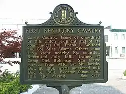 The 1st Kentucky Cavalry Regiment was organized at Liberty, Burkesville, and Monticello, Kentucky and mustered in for a three-year enlistment on October 28, 1861. It was mustered in under the command of Colonel Frank Lane Wolford.