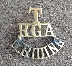 All Volunteer Artillery units became part of the Royal Garrison Artillery (RGA) in 1899 and in 1902 the unit was redesignated 1st North Riding Royal Garrison Artillery (Volunteers).[3][4][11]