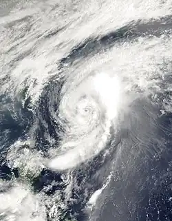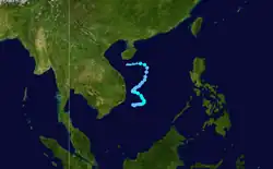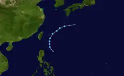 On May 15, a monsoonal trough associated with a low pressure area formed north west of the Philippines. On May 17 the low pressure area started to drift across the northern Philippines, and rapidly intensified into a tropical storm before quickly dissipating due to vertical wind shear on May 20. The remnants were soon absorbed by a non-tropical low on May 22.