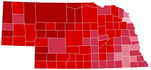 Nebraska was won by Governor George W. Bush by a 29% margin of victory, winning every county. Also, with 62.25% of the popular vote, the state proved to be his fourth strongest state in the 2000 election after Wyoming, Idaho and Utah.[1] As of the 2024 presidential election, this is the last time that either major party nominee won every county in Nebraska.