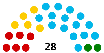 All 28 seats in the General Council 15 seats needed for a majority | ||