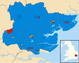 All 79 seats to Essex County Council 40 seats needed for a majority | ||||||||||||||||||||||||||||||||||||||||||||||||||||||||||||||||||||||||||||||||||||||||||||||||