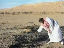 By this time, Harithi and his bodyguards were believed to be residing in Yemen's portion of the Rub al Khali desert, constantly shifting locations while utilizing different vehicles and paying local Bedouins to navigate them.[21][31] Yemeni security forces and US Special Forces contingents, such as the 5th Special Forces Group, had been searching for Harithi on the ground for months, while US Air Force U-2 planes and CIA Predator's patrolled the airspace.[21][32] In at least two instances, US forces were preparing to launch a drone strike before Yemeni agents informed them that they were mistakenly targeting civilian Bedouins.[28]