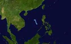 An area of convection formed on May 16 to the southwest of Palau, located within an area of weak wind shear. The next day, the JMA and the JTWC both classified the system as a tropical depression. The convection was disorganized in association with multiple circulation centers, although it gradually organized. Moving westward initially, the depression turned more to the north into an area of increasing wind shear. On May 19, the JTWC upgraded the system to Tropical Storm 03W,[1] and on the same day, PAGASA classified it as Tropical Depression Batibot.[39] Soon after, the convection decreased from the center, and by May 20, all warning agencies had discontinued advisories.[1]