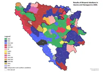 Municipal elections were held in Bosnia and Herzegovina on 2 October 2004 to elect mayors and assemblies in 144 municipalities and cities.