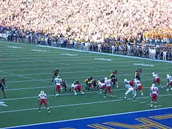 In a controversial case, the Texas coach Mack Brown made impassioned pleas to media asking poll voters reconsider their final votes.[5] Several Associated Press (AP) voters were besieged by fan emails and phone calls attempting to sway their votes, apparently spurred from Brown's pleas to rank Texas ahead of other "less deserving teams."[6][7] Nine of the 65 AP voters switched Texas ahead of Cal, and three of them were from Texas.[8] In the Coaches Poll, four voters moved Cal down to No. 7 and two to No. 8, when the week before none had them lower than No. 6. Meanwhile, two coaches moved Texas up to No. 3 when the team did not play that week.[9][10] The Los Angeles Times wrote that accusations were raised about coaches manipulated voting, but the individual coaches votes were not released to prove or disprove the allegations.[11] The AP Poll makes its voters' records public.[12] No. 6 Texas gained 23 points on No. 4 Cal in the AP poll, and the fifth-ranked Longhorns closed 43 points on the fourth-ranked Bears in the coaches poll. That allowed Texas to earn a BCS berth, finishing .0129 points ahead of Cal in the BCS standings after being .0013 points behind.[8] The Longhorns went on to beat Michigan 38–37 in the Rose Bowl. In part because of the controversy with Cal's BCS ranking, the AP poll withdrew from the BCS after the season.[6]