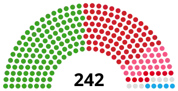 Last election 110 seats, 38.6% 67 seats, 24.1%[a] 23 seats, 15.0%