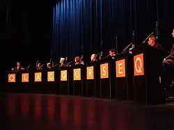 The seven public debates were orchestrated by election president Lyne Marcoux. They were broadcast live via the Parti Québécois official website, pq.org, and the LCN television news channel. In order to allow substantial and orderly exchanges with such a number of people, every occasion was divided into a series of three discussions, amongst three candidates each. Candidate groupings were set at random. Additionally, for every debate, opening and closing speeches were addressed, and selected questions from the audience and the internet were debated. This selection was executed by an impartial panel led by Monique Richard, the party president.