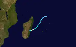 Most of the storms in the season occurred in the western portion of the basin.[6] From December 2006 to April 2007, a series of floods and storms affected Madagascar, including Bondo, Clovis, Favio, Gamede, Indlala, and Jaya;[8] this made it the most active season in the country since the 1999–2000 South-West Indian Ocean cyclone season.[6] The series of storms and floods left 10,000 families homeless, directly affecting 9% of the country's population. These floods left 336,470 people in emergency need of food,[8][9] after the storms destroyed 76,105 ha (188,060 acres) worth of crops.[10] The World Food Programme provided meals, distributed through non-governmental organizations and local officials. This covered the needs for these families until farmers were able to rebuild and regrow their food supply, using seeds provided by the Food and Agriculture Organization.[9] The Malagasy Red Cross provided more than 10,000 residents across the country with insecticide-treated mosquito nets.[11] The series of floods diminished the country's stock of supplies from United Nations agencies,[12] spurring a declaration of a national emergency,[13] and a nearly US$19.5 million appeal for international assistance. Countries around the world donated money or supplies to help the relief effort.[9] UNICEF distributed 100 freezers and refrigerators to health facilities that bore the consequences of the active season. The agency also provided the resources to rebuild or repair 95 schools.[14]
