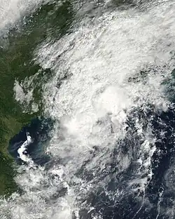 Heavy rainfall in Taiwan caused flooding and four minor injuries. Rain also fell heavily in the northern Philippines.[25] The storm has also killed at least 32 people in China, while another 60 people are missing. Agricultural losses in Taiwan amounted to NT$73 million (US$2.2 million).[26] Total damages from the storm amounted to $450 million.