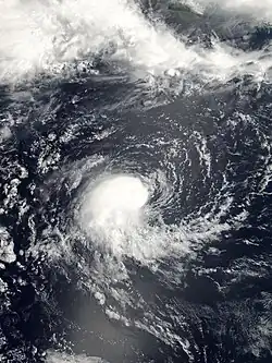 On 29 July, an area of low pressure, close to the edge of RSMC La Reunion's Area of responsibility, was designated as Tropical Disturbance 01R. However, this number was withdrawn in RSMC La Reunion's post–storm analysis.[2] The JTWC issued a Tropical Cyclone Formation Alert (TCFA) on the developing system on 29 July,[3] and initiated warnings on the tropical cyclone late that day, designating it as Tropical Cyclone 01S.[4] However, by this time, the cyclone had crossed 90E and entered TCWC Perth's Area of Responsibility, which designated it as a Tropical Low and issued shipping warnings on the Tropical Low.[2] Early on 30 July, the tropical cyclone began to dissipate, so the JTWC issued their final advisory on the system on that day.[5] and the Bureau of Meteorology issued its last warning the next day.[2]