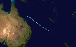 On 4 February, the Tropical Cyclone Warning Centre (TCWC) in Perth identified a Tropical Low South west of Christmas Island, and began issuing shipping warnings.[39] Initially it was predicted that the system would intensify into a tropical cyclone but later on 4 February, the cyclone began to weaken with the final gale warnings being issued by TCWC Perth later that day. Over the next few days the system drifted eastwards and then on 6 February began showing signs of intensification.[40] The following day, the Joint Typhoon Warning Center (JTWC) issued its first advisory, designating the low as Tropical Cyclone 17S.[41] Later that day TCWC Perth reinstated Gale warnings on the tropical low.[40] On 10 February The TCWC Perth and the JTWC issued their final advisories on the system.[42]
