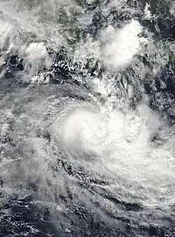 Flooding in Papua New Guinea led to at least 150 deaths.[16] In the Oro Province, about 2,000 people were evacuated as a result of the flooding.[17] Roads, bridges and 40 houses were washed away, as tides in the area reached two metres high.[18] The provincial capital, Popondetta, had its water supply shut down, and Papua New Guinea's national airline, Air Niugini, suspended flights to Popondetta's main airport. The Rabaraba district in Milne Bay Province was also hit by flooding, with 30 houses and food gardens washed away, and forcing the evacuation of about 100 people.[17] The government in Papua New Guinea reported that an estimated 145,000 people were affected from the flooding in Oro Province.[19] Six days of torrential rain led to a damage total of 200 million kina (US$71.4 million). Guba was the first tropical cyclone to be assigned a name from Port Moresby's name lists since Tropical Cyclone Epi in 2003. It is the first cyclone to occur in the Queensland region in the month of November since 1977.[20]