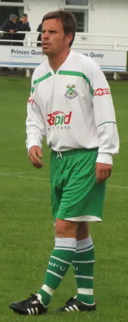 In the FA Cup, Sinnott's first cup game in charge saw Vale take revenge on Morecambe with a 2–0 win at Vale Park,[53] to give the "Valiants" what seemed to be an easy second round tie with Southern League side Chasetown (an eighth tier team 101 league places below them).[54] Vale sacrificed a one-goal lead over the amateurs to limp to a 1–1 draw at Vale Park, after conceding from a 40 yards (37 m) free kick taken by trainee accountant Mark Branch.[55][56] Chasetown then made a giant-killing with a late goal on their home ground, after Luke Rodgers missed two penalties.[57]