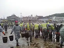 Volunteers cleaning up