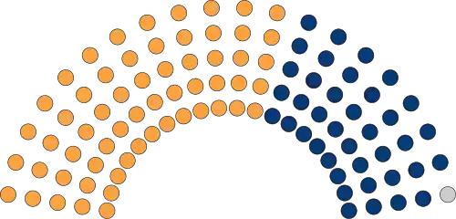 Last election 24.1%, 133 seats 27.0%, 155 seats 17.6%, 55 seats[a]