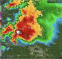During the afternoon hours of May 25, 2008, a large and extremely powerful EF5 wedge tornado, most commonly referred to as the Parkersburg tornado[1] or alternatively known as the Parkersburg–New Hartford tornado,[2] devastated the towns of Parkersburg and New Hartford, Iowa. Part of a large tornado outbreak across the central plains, the tornado killed nine people and caused around $75 million in damages across its approximately 43 mile path through northeast Iowa.