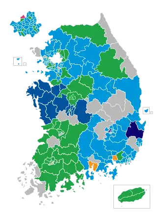 | Gyeonggi | 32 | 48.3 | 17 | 37.0 | 1 | 3.8 | 0 | 2.4 | 0 | 2.8 | 0 | 0.1 | 1 | 51 |