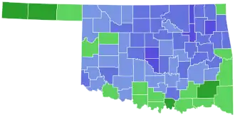 This was the last time a Democrat carried any counties in an Oklahoma U.S. Senate election until 2022 and the last time any Democrat did so in a regular Senate election.