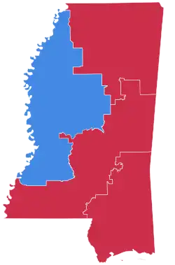 In 2008, Barack Obama was able to improve on Kerry's performance by six percent, mainly due to the higher African American turnout. Obama's main support was in the western delta counties next to the Mississippi River. In contrast, McCain's margins came from the regions bordering the Gulf Coast, the northeast Appalachian area and the Jackson and Memphis suburbs. Voting became even more polarized: nine in ten Whites voted Republican, and nearly all African-Americans voted Democratic in Mississippi, according to exit polls.[18] As expected, McCain carried Mississippi by a comfortable 13.17-point margin over Obama. McCain's margin of victory, however, was less than that of George W. Bush's 19.69-point margin of victory over John Kerry in 2004.