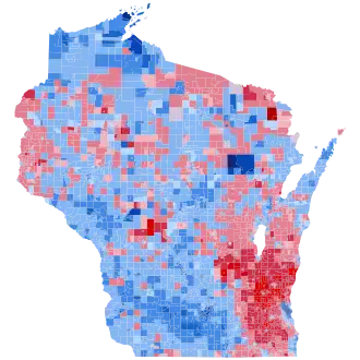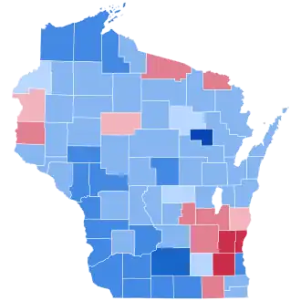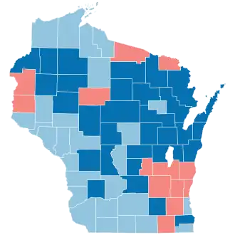 Obama won Wisconsin by a comfortable 13.91% margin of victory. Obama carried the heavily Democratic cities of Milwaukee and Madison by large margins, winning above two-thirds of the vote, along with some traditionally Republican cities like Green Bay and Appleton.[22] In Dane County, he won almost 73% of the vote, and carried 67.3% in Milwaukee County. This was consistent with Obama's pattern of strong performances in the states bordering Illinois. Obama's best performance, at 86.81%, was in the small county of Menominee, which is 87% Native American.[23] The state's Republican base essentially melted; John McCain only carried 13 of the state's 72 counties, a devastating defeat. McCain did best in the Milwaukee suburbs like Waukesha and Ozaukee counties, with his best performance in Washington County where he received 64.14% of the vote. He only won five counties in the Northern part of the state, all of which by rather narrow margins.