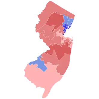 Christie: 40–50% 50–60% 60–70% 70–80% 80–90% >90% Corzine: 40–50% 50–60% 60–70% 70–80% 80–90% >90% Tie: 40–50% | |||||||||||||||||||||||||