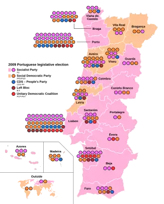 The 2009 Portuguese legislative election was held on 27 September, to renew all 230 members of the Assembly of the Republic.[1] In these elections there were approximately 9.5 million Portuguese at home and abroad called to determine the 230 seats in the Assembleia da República and 18th constitutional government in Portugal after 1976.
