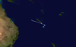 Late on January 21, RSMC Nadi reported that Tropical Disturbance 07F had developed about 570 km (350 mi) to the northwest of Nouméa, in New Caledonia.[64] During the next day the disturbance gradually organized further, with RSMC Nadi reporting that it had developed into a tropical depression later that day.[65] Early on January 22, RSMC Nadi released their final advisory on the tropical depression as it passed into TCWC Wellington's area of responsibility. Within hours of falling under their responsibility, Wellington declared the system as a low, no longer considering it tropical.