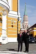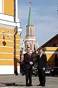 Chinese leader Hu Jintao confirmed his attendance at the parade on 3 May. The following day Slovak President Ivan Gašparovič's attendance was confirmed.[7] Other world leaders who confirmed their attendance included Czech President Václav Klaus,[8] French President Nicolas Sarkozy,[8] Italian Prime Minister Silvio Berlusconi,[8] Serbian President Boris Tadić,[9] Bulgarian President Georgi Parvanov,[10] and Vietnamese President Nguyễn Minh Triết,[11] Leaders from Armenia, Azerbaijan, Estonia, Greece, Israel, Kazakhstan, Latvia, Mongolia and Slovenia also confirmed their attendance.[9] On 8 May, Sarkozy and Berlusconi announced that they wouldn't be attending the parade in Moscow, so that they could deal with the euro area crisis.[12][13]