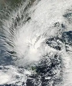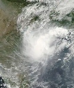Early on May 30, the India Meteorological Department (IMD) and the Joint Typhoon Warning Center (JTWC) reported that an area of low pressure had formed about 925 km (575 mi), to the southwest of Mumbai, India. The area of low pressure had loose organized convection developing around the low level circulation center within the monsoon trough. The system was located to the south of a high pressure center anchored over Oman in an area of moderate vertical windshear. On May 31, the India Meteorological Department (IMD) upgraded an area of low pressure to a depression, giving it the designation "ARB 02".[12] The IMD further upgraded the depression into a deep depression the next day.[13] JTWC reported the same day that a Tropical Storm had formed.[14] On June 1, IMD upgraded the system into a cyclonic storm and named it "Phet".[15] The storm intensified to a Severe Cyclonic Storm in early hours of June 2.[16] The same day IMD upgraded the storm to a Very Severe Cyclonic Storm.[17] By the 5th, the cyclone had been downgraded to a cyclonic storm by the IMD as it passed over the Gulf of Oman.[18] On the 7th, Phet dissipated completely.[19]