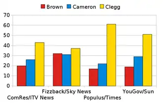 2. ^ "Leaders clash in historic debate". 15 April 2010. Archived from the original on 9 December 2019. Retrieved 9 December 2019.