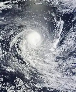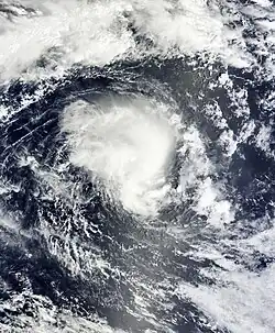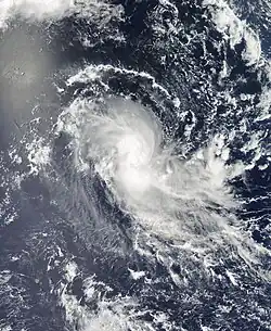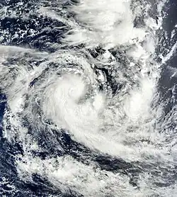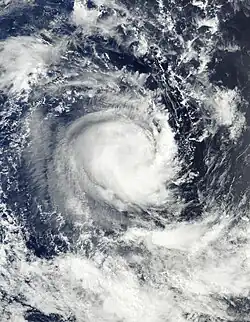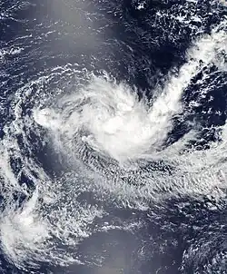 On June 1, a tropical wave formed in the South West Indian Ocean. Two days later, the tropical wave organized into a low-pressure area, due to favorable conditions. On June 5, the low-pressure area was upgraded to a tropical disturbance by Météo-France, 400 miles (645 km) ENE of the Agaléga Islands, and later to a tropical depression. On June 6, JTWC designated it as Tropical Cyclone 20S, with the Mauritius Weather Service upgrading it to a moderate tropical storm naming it "Kuena" soon afterwards. Later, on the same day, the storm was upgraded to a severe tropical storm by MFR.[50] On June 7, dry air, and moderate vertical wind shear caused the system's low level circulation center to become exposed. Soon afterwards, Kuena began to weaken. Late on June 7, RSMC La Réunion issued their last advisory on Kuena, as the storm weakened to a remnant low. Kuena was one of the most off-season storms ever recorded, forming approximately 2 months after the official end of the season.